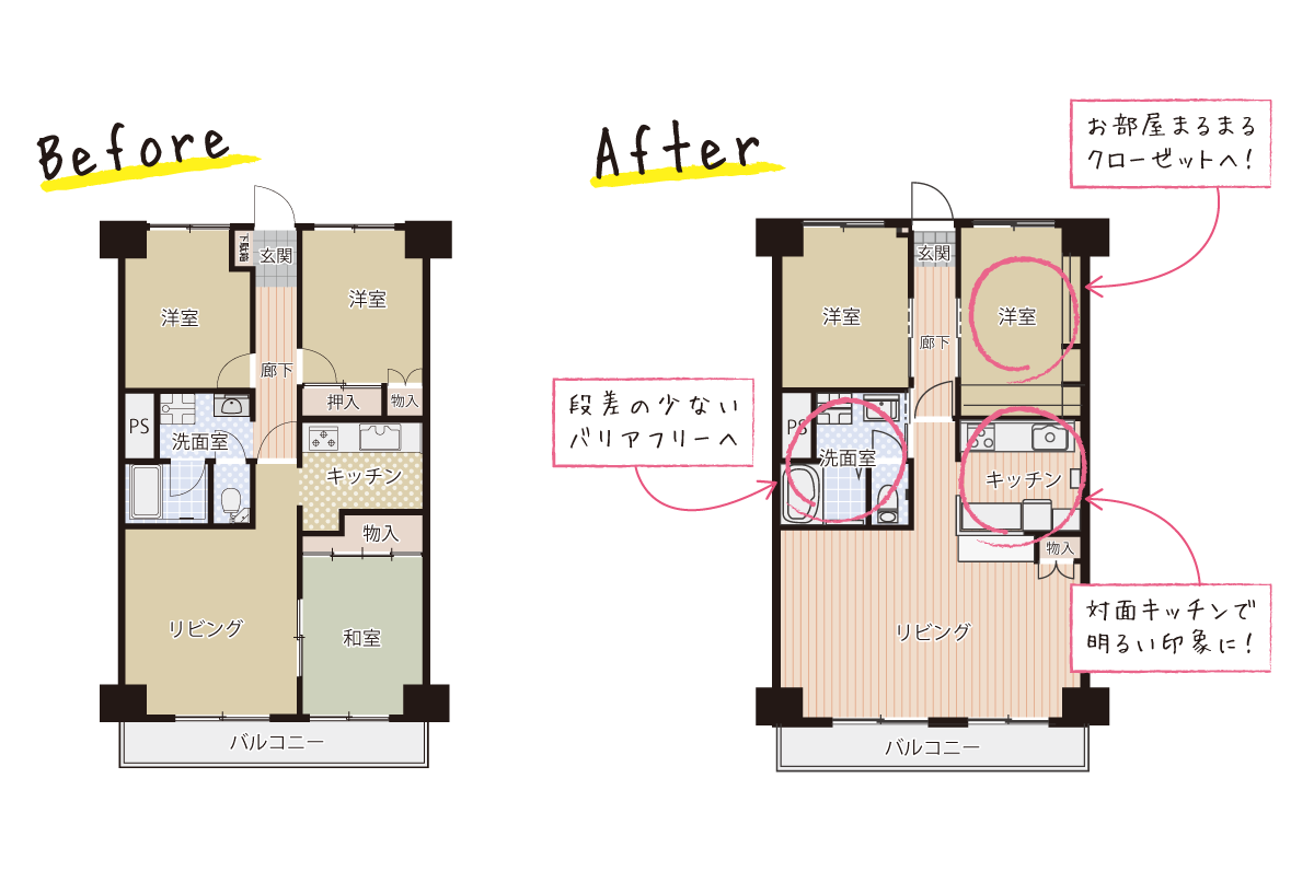 ・和室をなくして、広いリビングへ変更