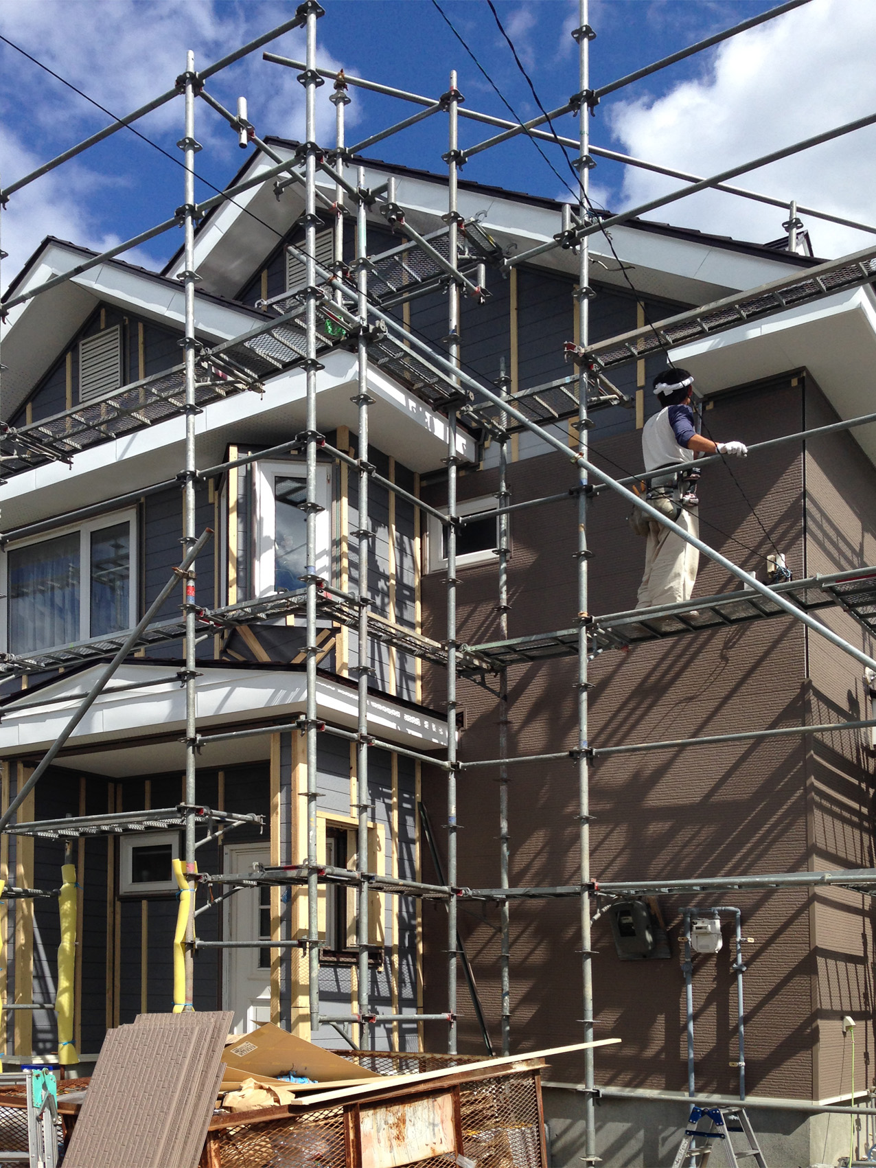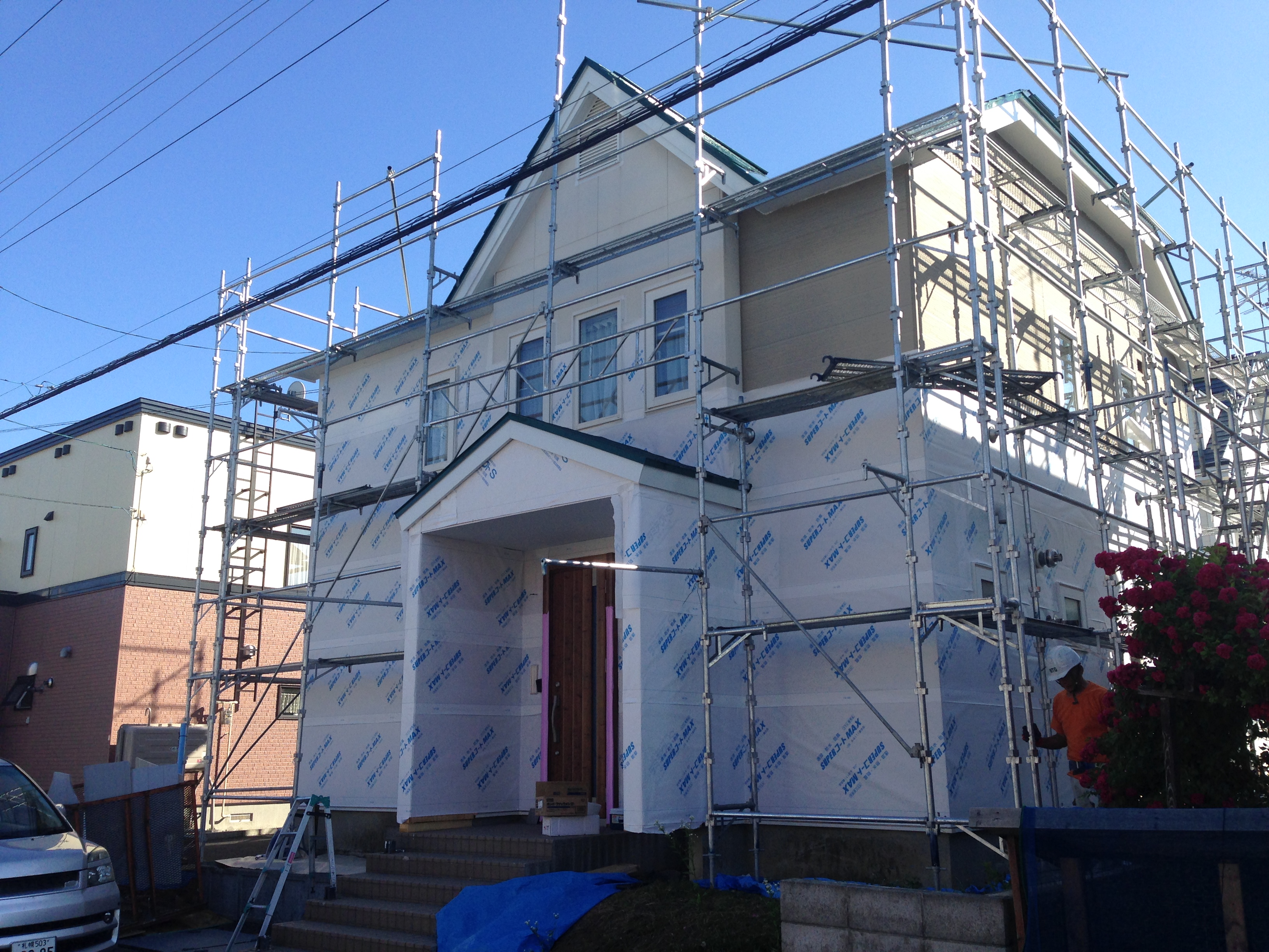 足場を掛けて、工事開始!