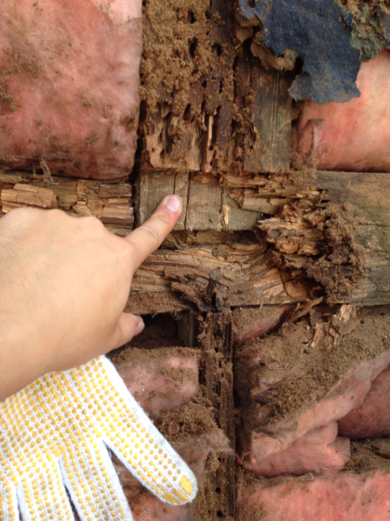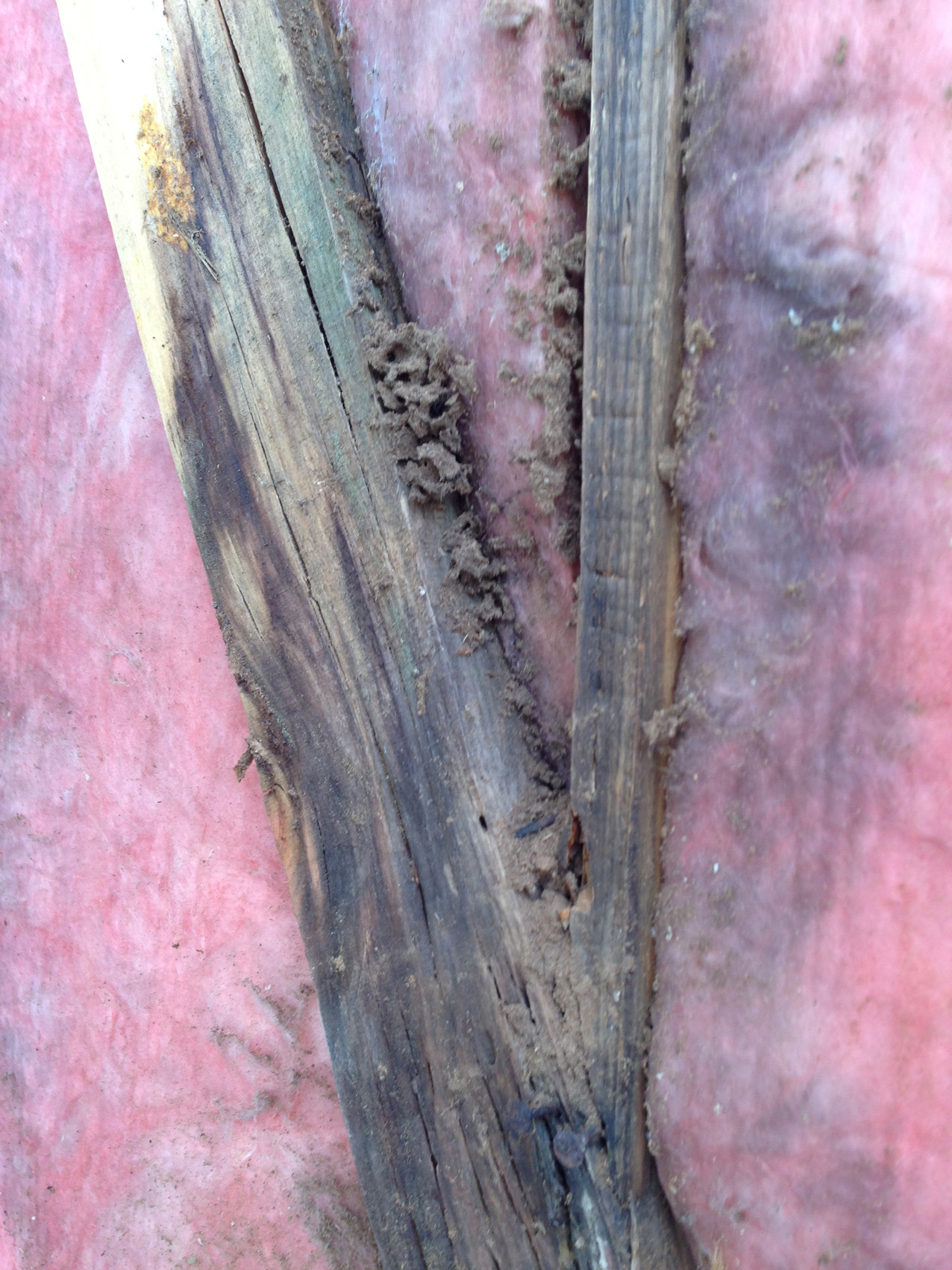 雨水が侵入して湿っていた柱部分に、なんと大量の蟻が巣作り中(--;