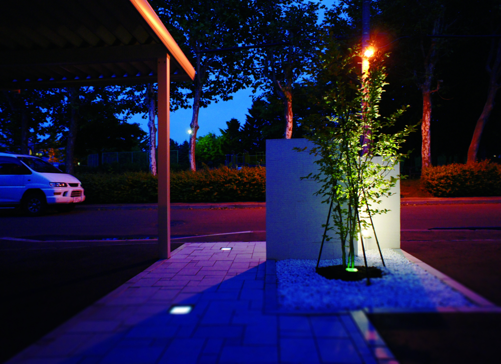 お庭全体をやさしく照らし安全性を確保しつつ光と影のコントラストが幻想的な雰囲気を作り出しております。