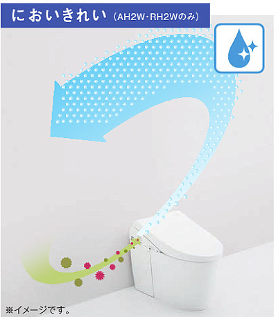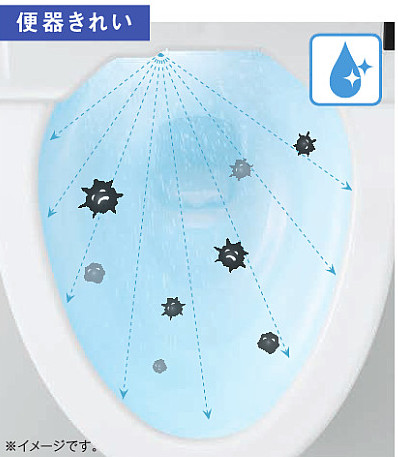 「きれい除菌水」による、便器きれい、ノズルきれい、においきれい