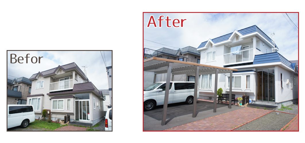 気になるところをまとめて、屋根張替・外壁張替・玄関フードやカーポートもトータルコーディネート。