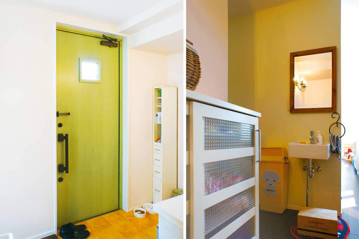 また、玄関ホールには手洗いを設置。農作業後や、子供たちが気軽に使えてとても便利になりました。